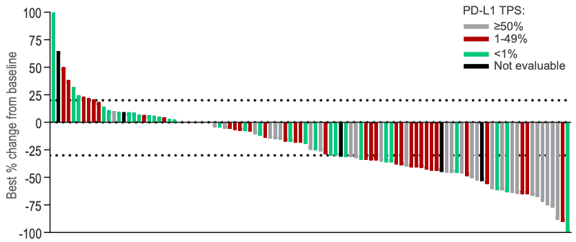 - Encouraging responses observed in all PD-L1 status groups, including those patients with PD-L1 negative (TPS < 1%) and PD-L1 low (TPS 1-49%) expressing tumours who are less likely to respond to anti-PD-1 monotherapy